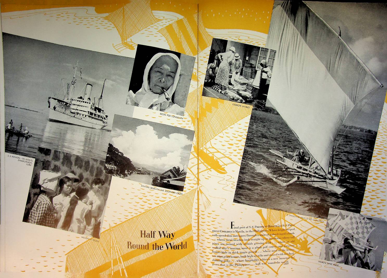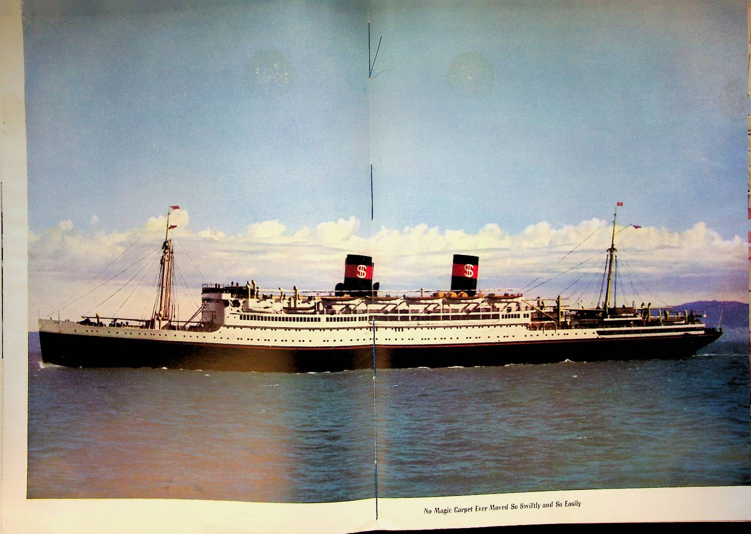 Dollar Line: ca. 1935 USA, softcover, 48 pages. Large brochure, 33x24cm, with many photos of the ships and their interiors. Some pages slightly warped by moisture. In good condition