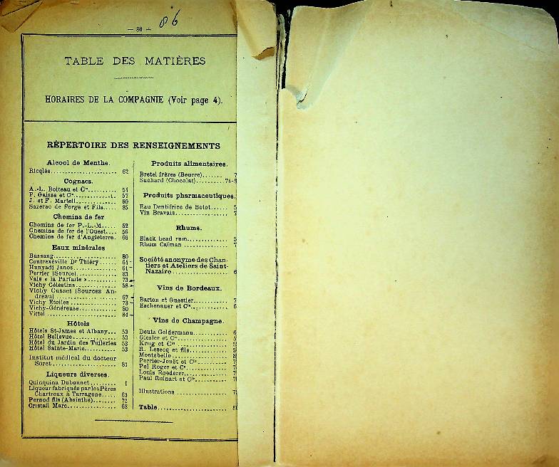 Compagnie Generale Transatlantique: 1907 Paris, softcover, 86 pages, with information for travelers with the diverse routes and advertisements. Some marks of use.