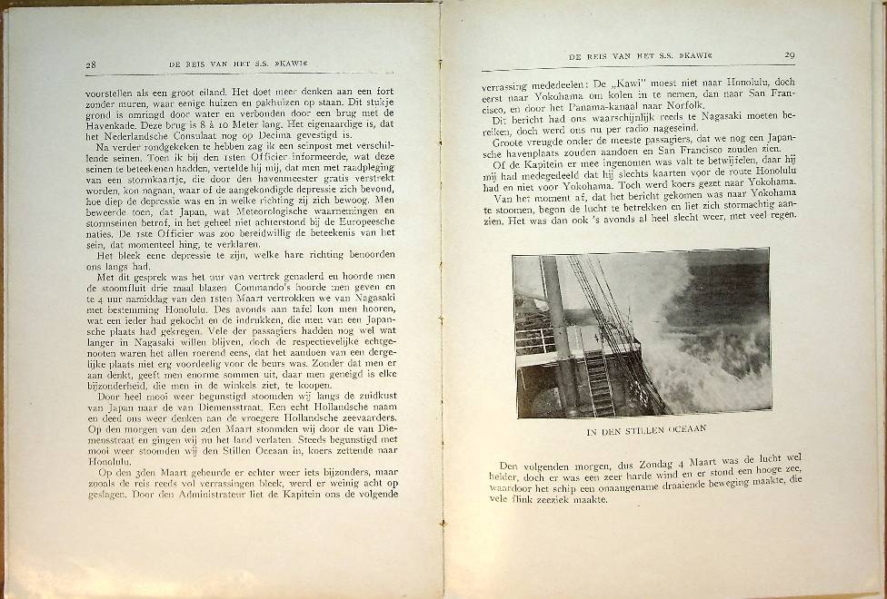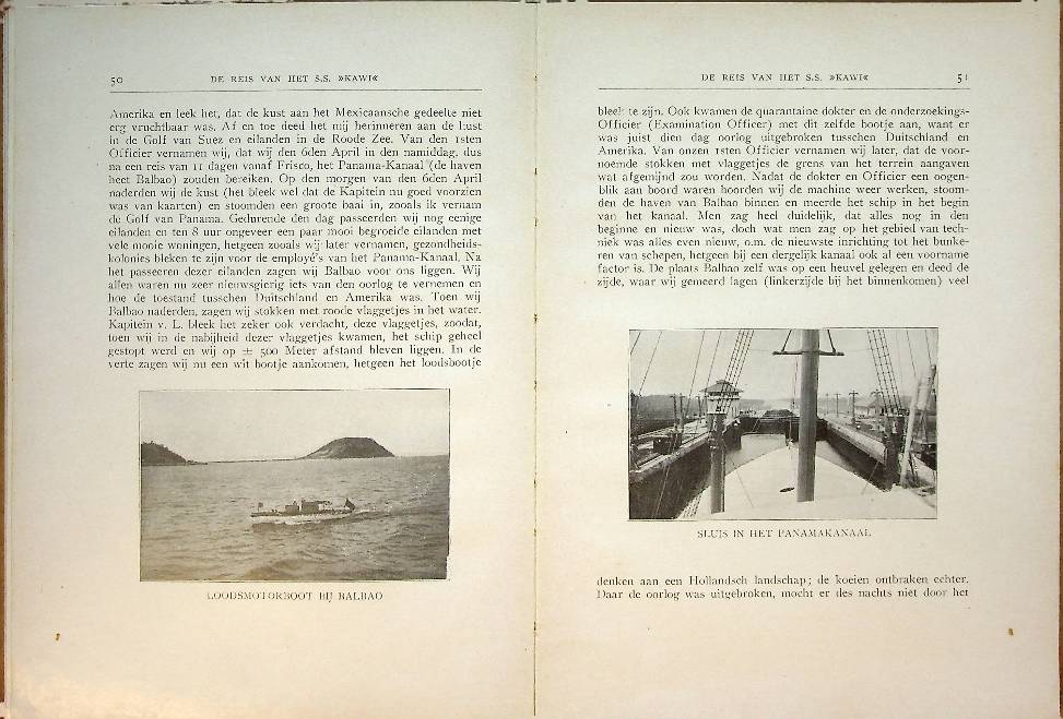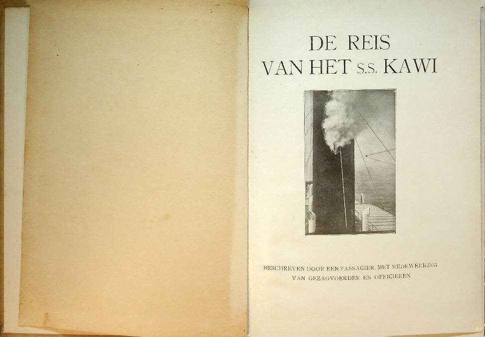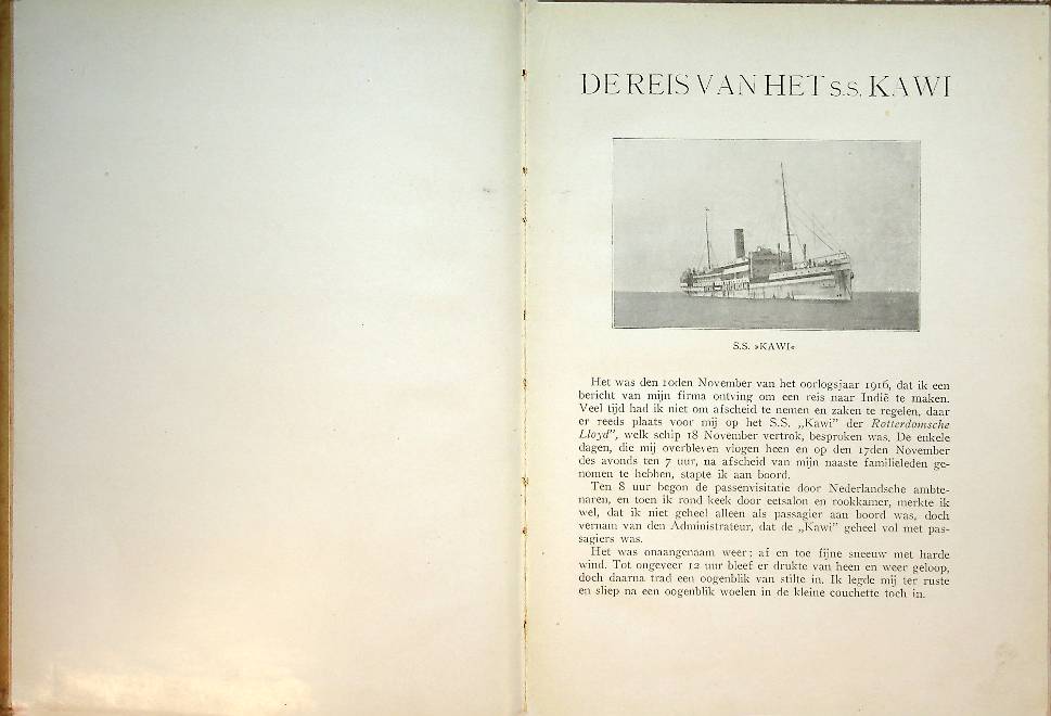 Rotterdamsche Lloyd: Rotterdam +/- 1917, hardcover 74 blz., met foto's van de reis en de ss. Kawi. Reisverhaal aan boord van de s.s. Kawi, schip van de Rotterdamsche Lloyd beschreven door een passagier. In zeer goede staat